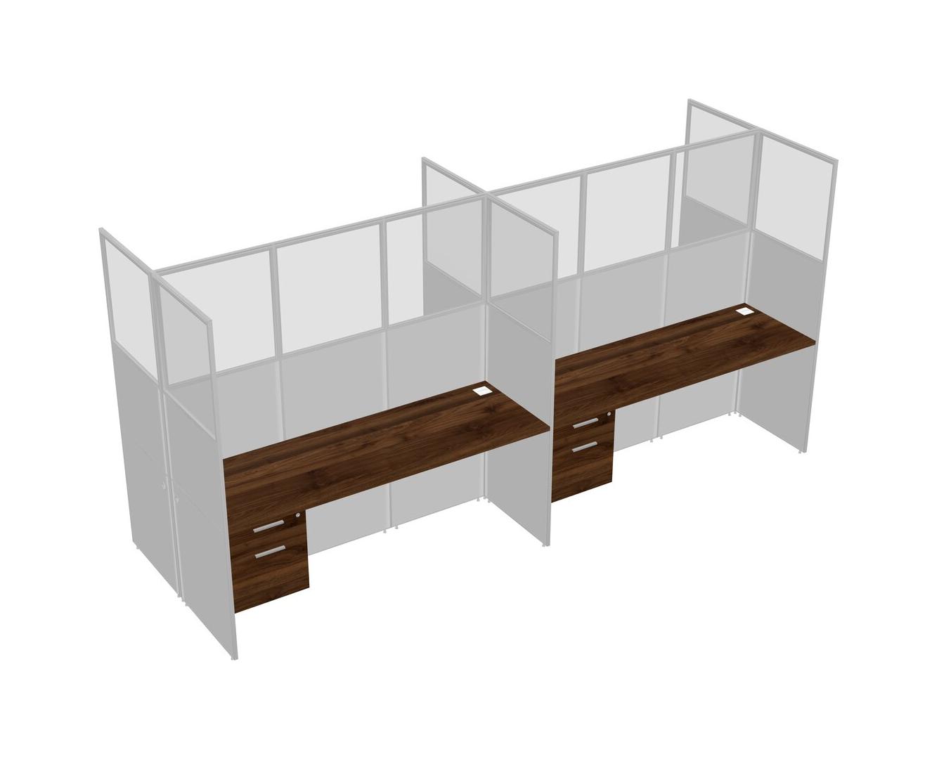 Columbia Walnut Shared Rectangular Office Cubicle Panel System With Hanging Drawers For 4 Persons