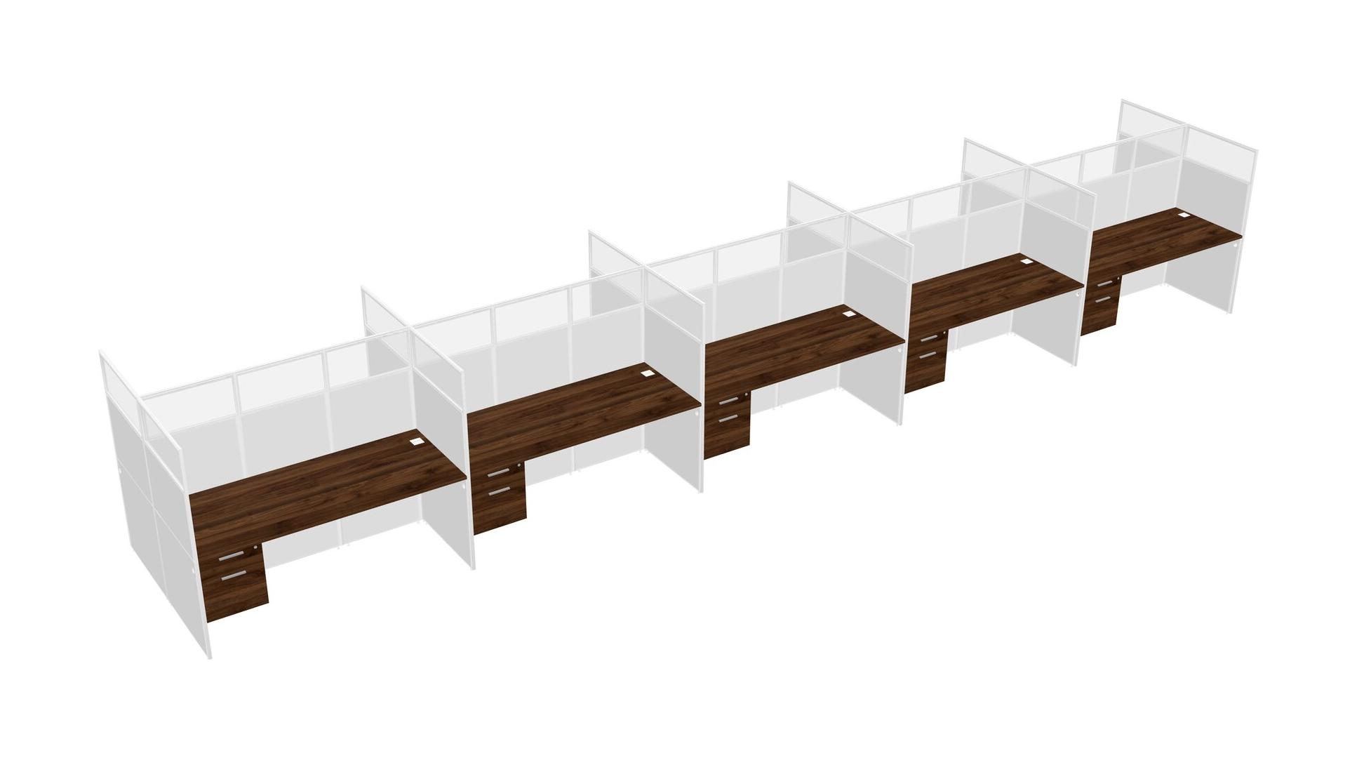 Columbia Walnut Shared Rectangular Office Cubicle Panel System With Hanging Drawers For 10 Persons