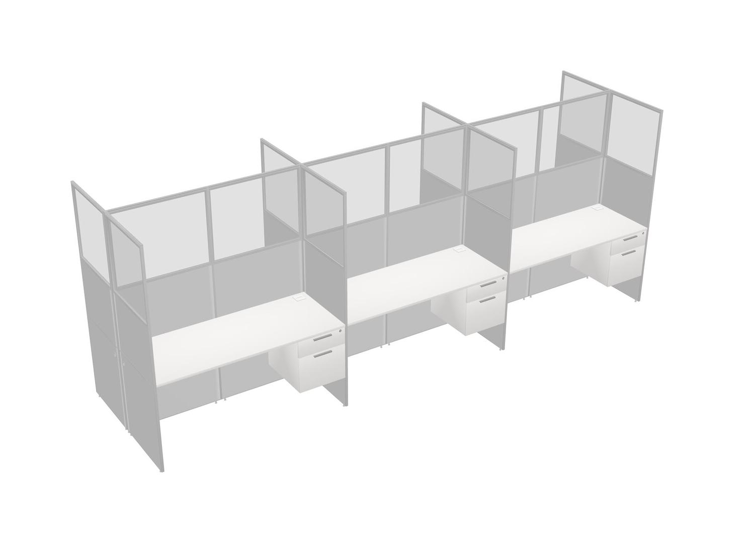 White Shared Rectangular Office Cubicle Panel System With Hanging Drawers For 6 Persons