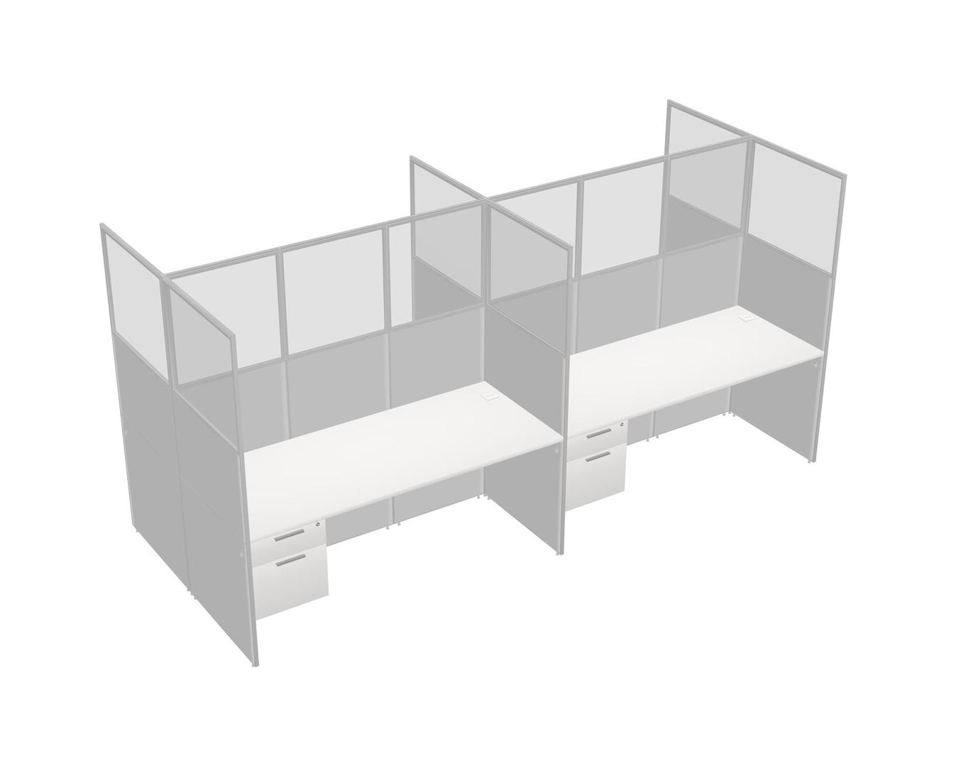 White Shared Rectangular Office Cubicle Panel System With Hanging Drawers For 4 Persons
