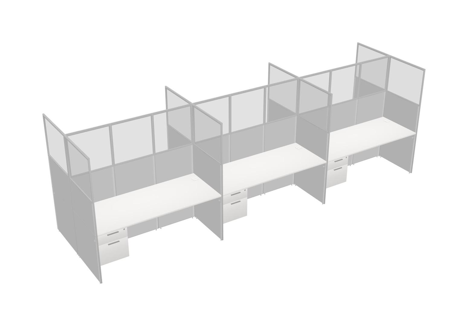 White Shared Rectangular Office Cubicle Panel System With Hanging Drawers For 6 Persons