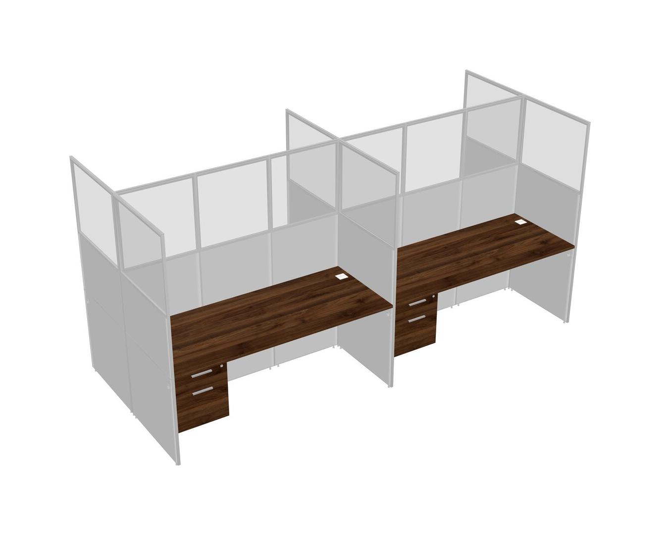 Columbia Walnut Shared Rectangular Office Cubicle Panel System With Hanging Drawers For 4 Persons