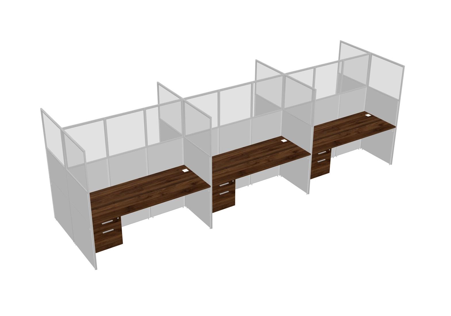 Columbia Walnut Shared Rectangular Office Cubicle Panel System With Hanging Drawers For 6 Persons