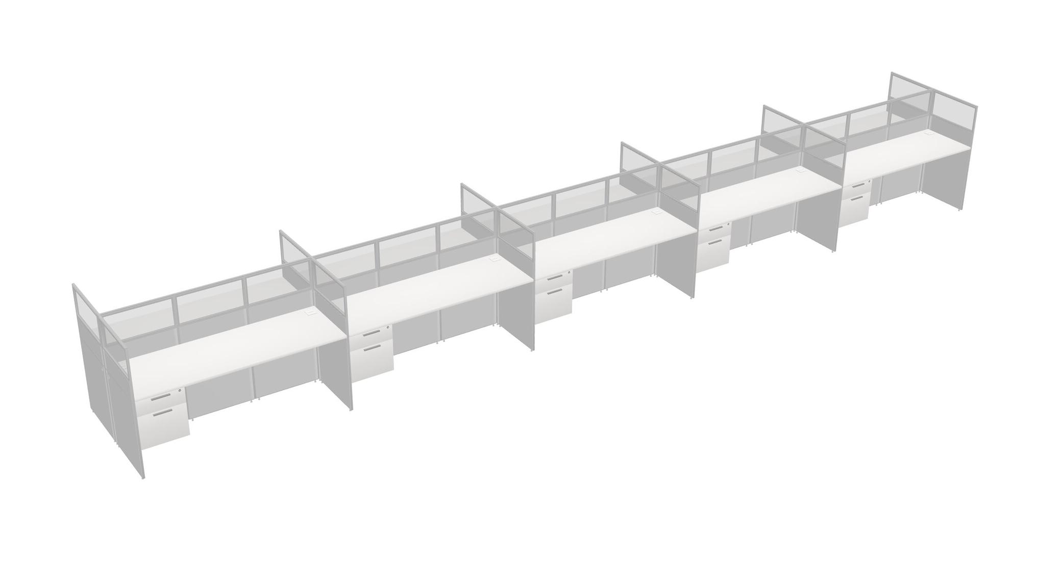 White Shared Rectangular Office Cubicle Panel System With Hanging Drawers For 10 Persons