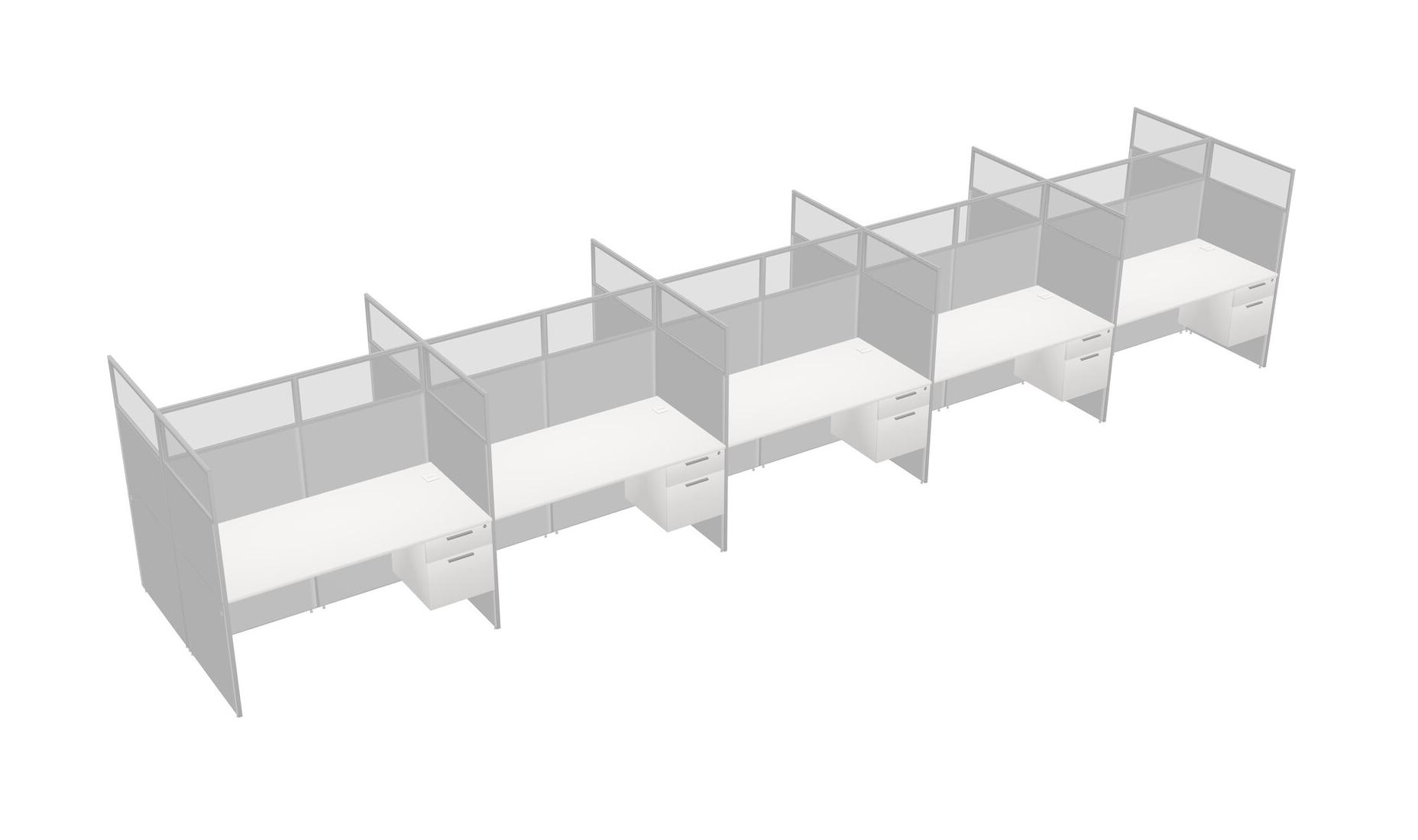 White Shared Rectangular Office Cubicle Panel System With Hanging Drawers For 10 Persons