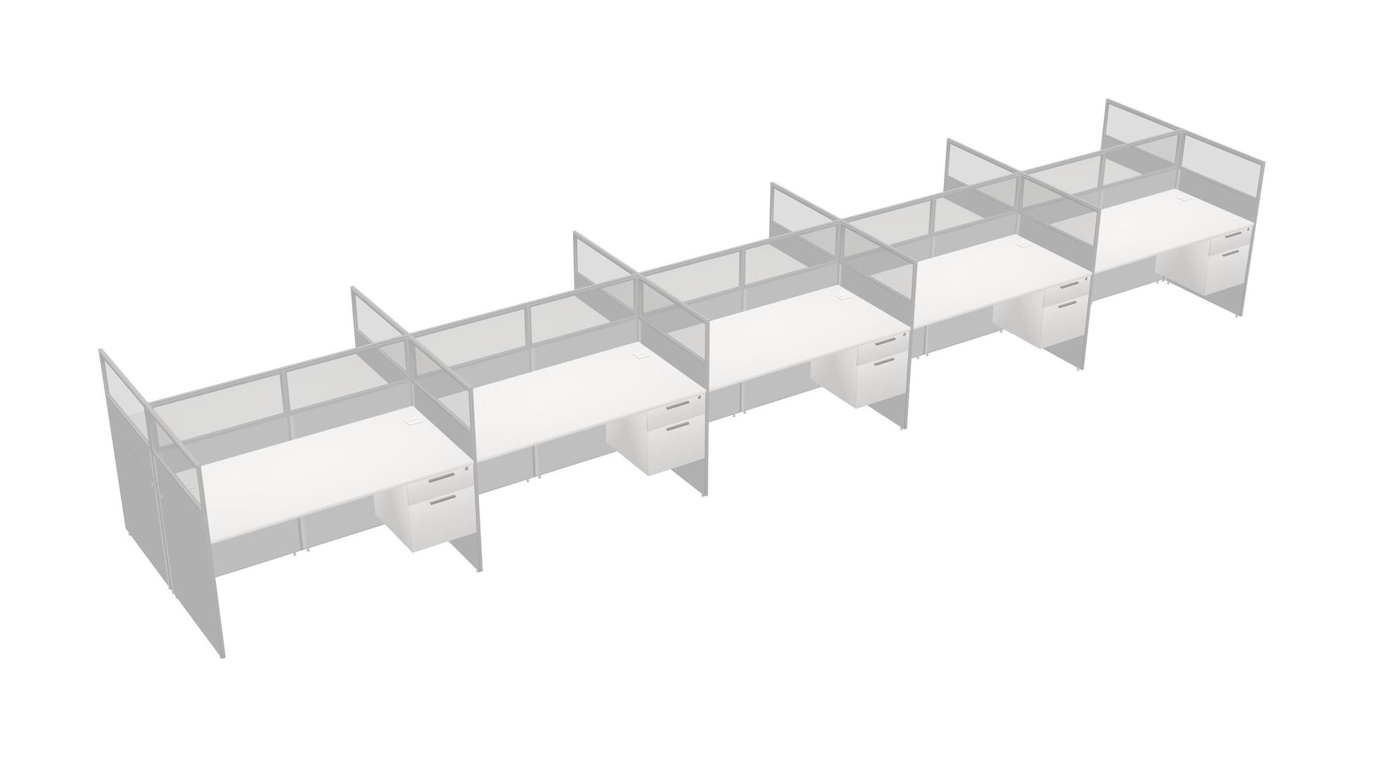 White Shared Rectangular Office Cubicle Panel System With Hanging Drawers For 10 Persons