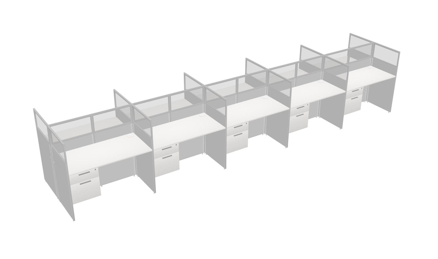 White Shared Rectangular Office Cubicle Panel System With Hanging Drawers For 10 Persons