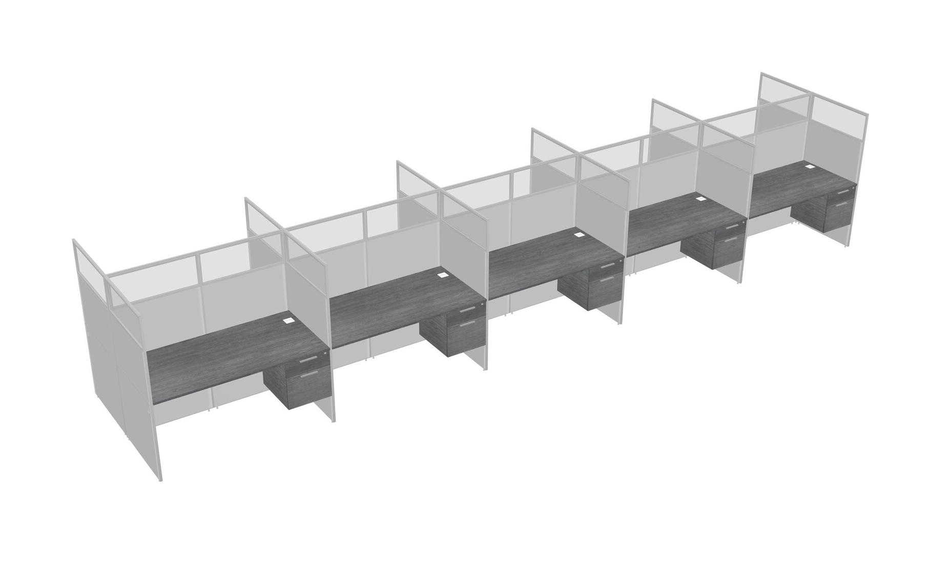 Grey Shared Rectangular Office Cubicle Panel System With Hanging Drawers For 10 Persons