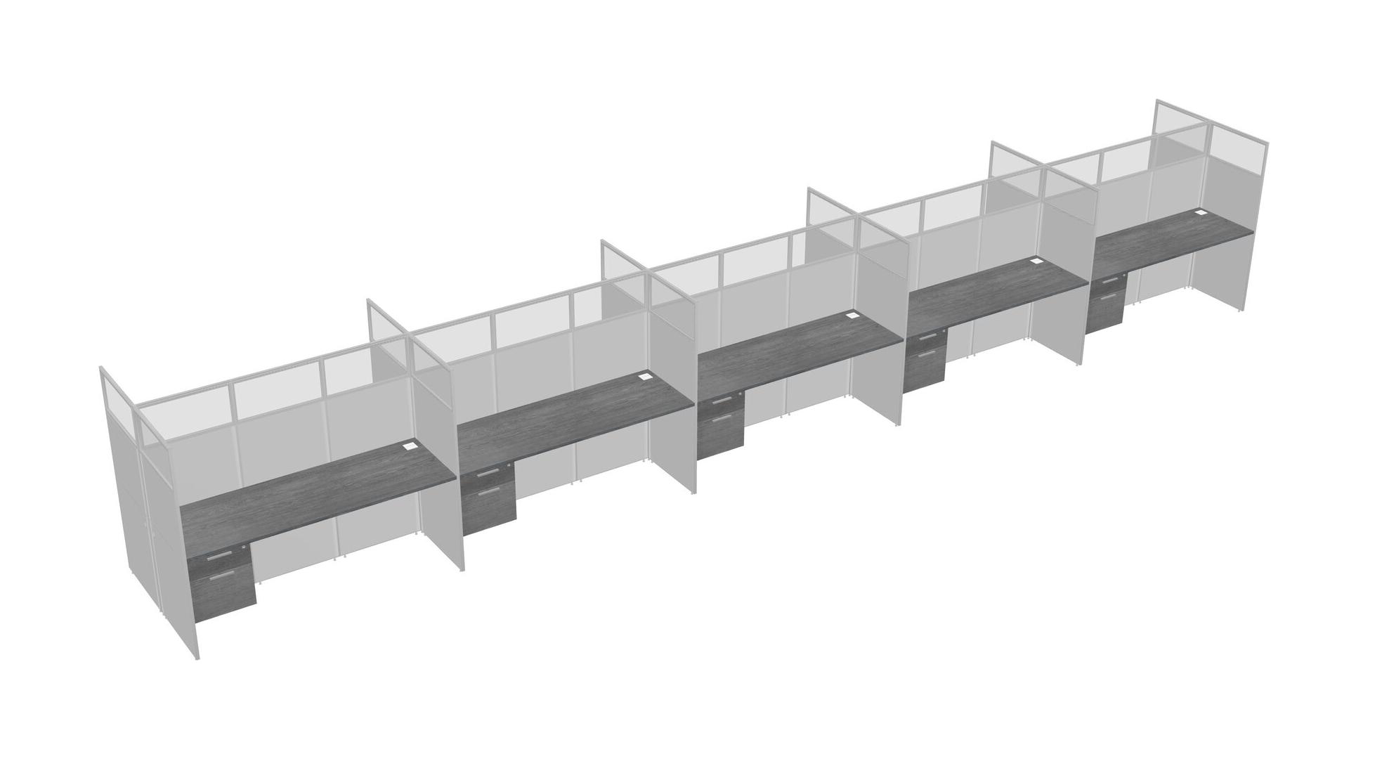 Grey Shared Rectangular Office Cubicle Panel System With Hanging Drawers For 10 Persons