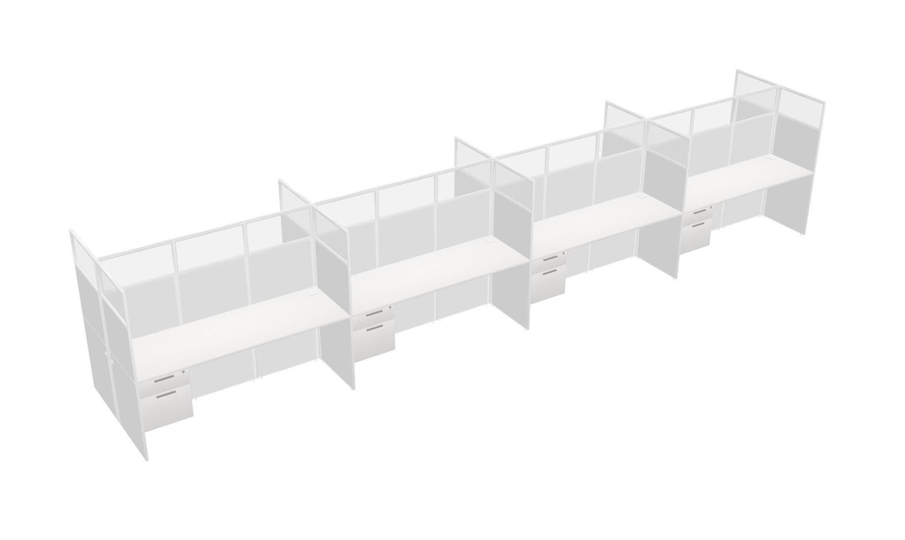 White Shared Rectangular Office Cubicle Panel System With Hanging Drawers For 8 Persons