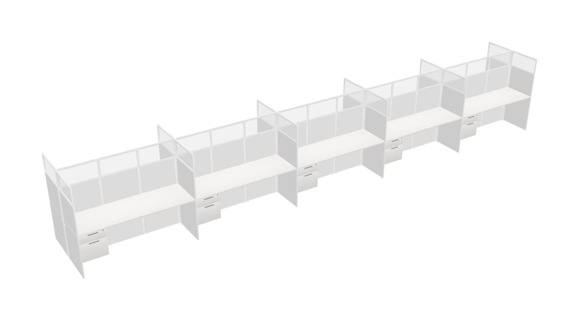 White Shared Rectangular Office Cubicle Panel System With Hanging Drawers For 10 Persons