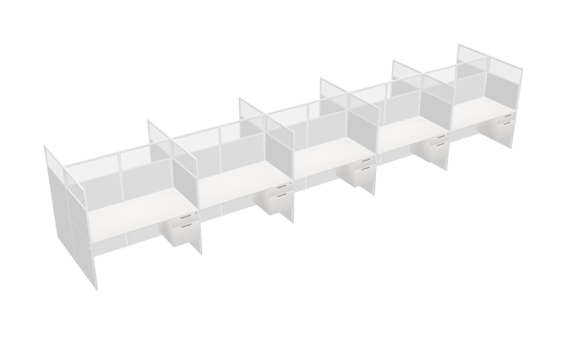 White Shared Rectangular Office Cubicle Panel System With Hanging Drawers For 10 Persons