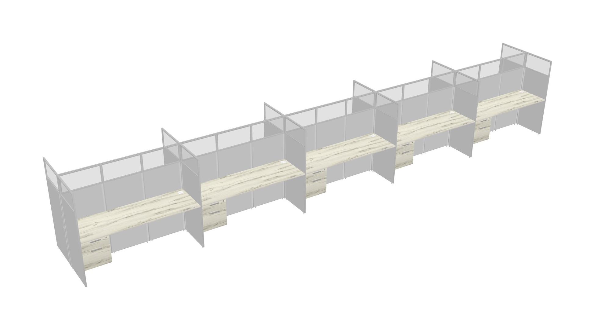 Heinne Holz Shared Rectangular Office Cubicle Panel System With Hanging Drawers For 10 Persons