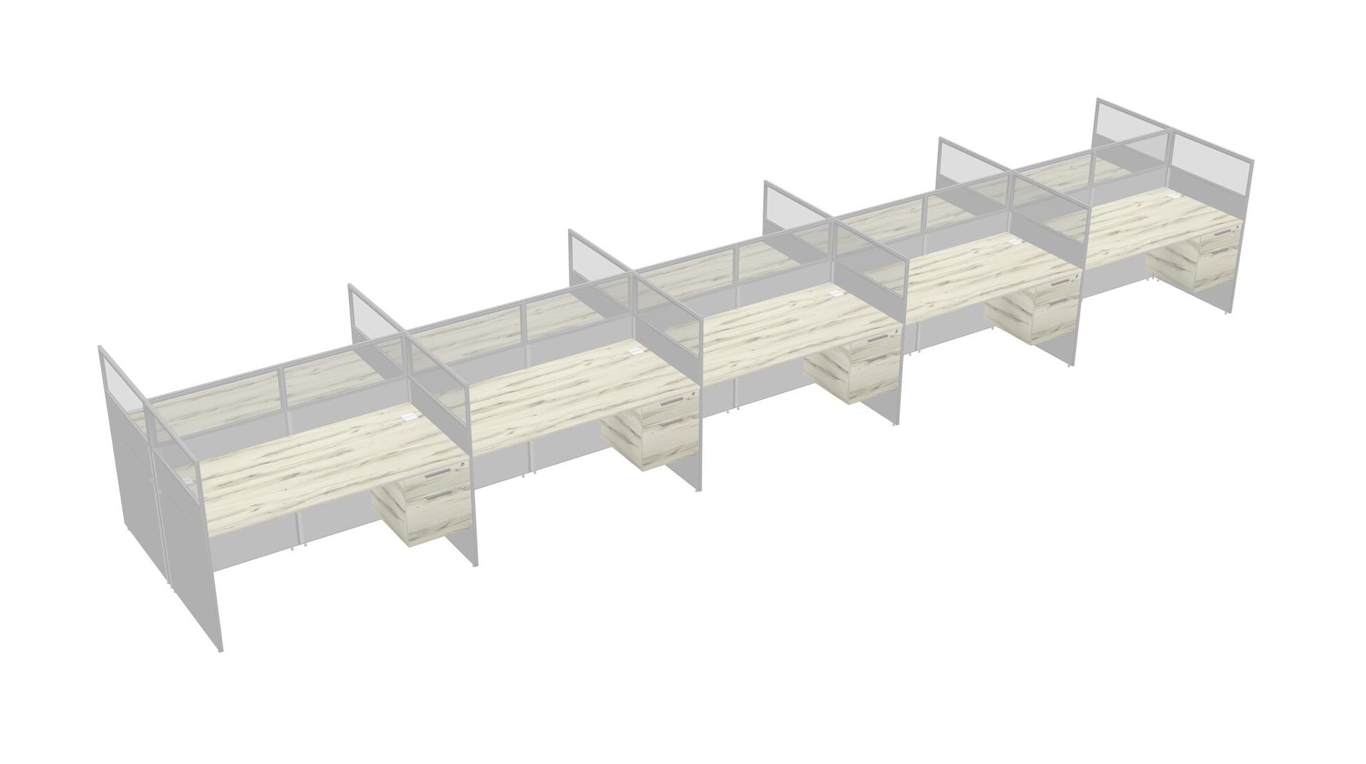 Heinne Holz Shared Rectangular Office Cubicle Panel System With Hanging Drawers For 10 Persons
