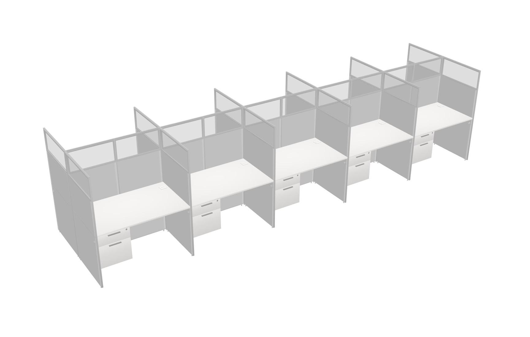 White Shared Rectangular Office Cubicle Panel System With Hanging Drawers For 10 Persons