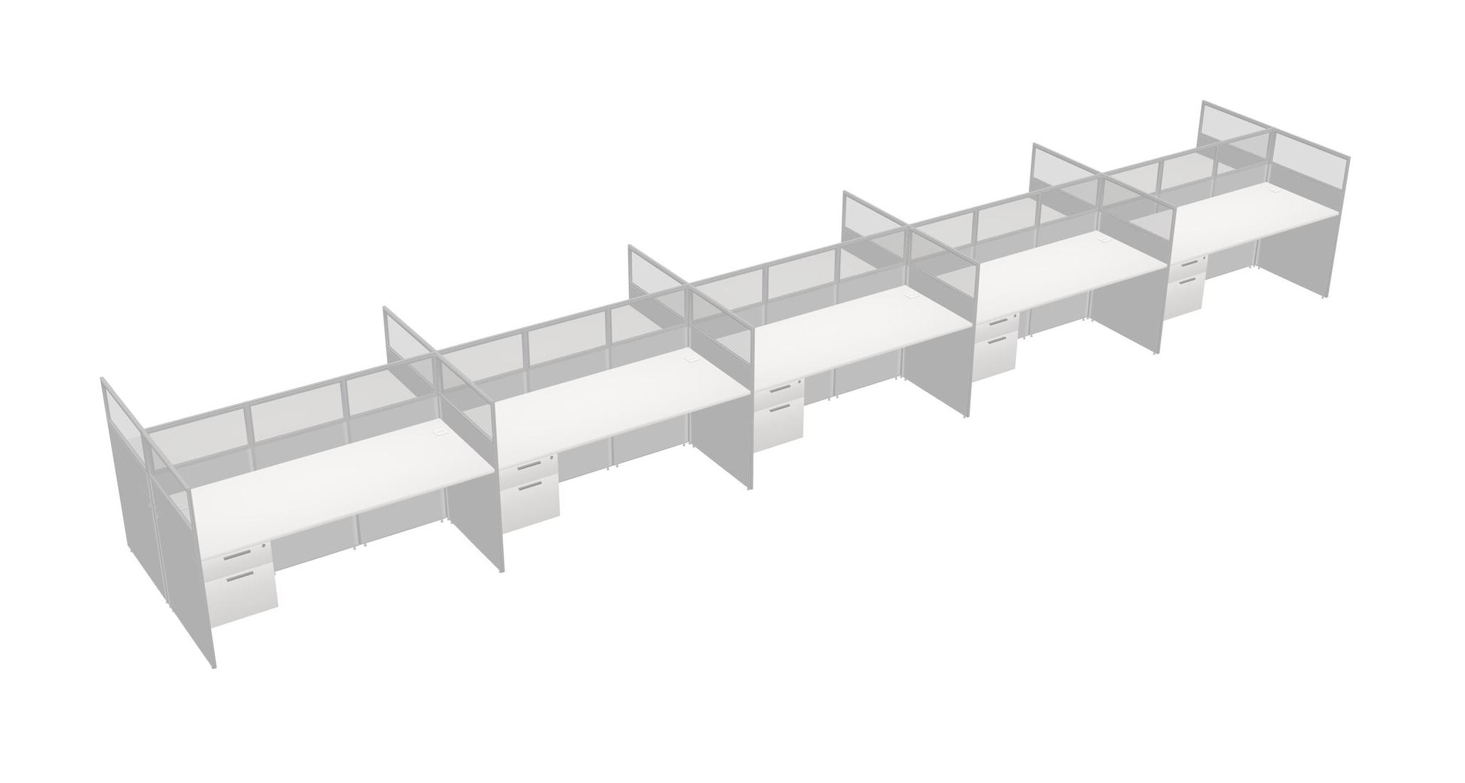 White Shared Rectangular Office Cubicle Panel System With Hanging Drawers For 10 Persons