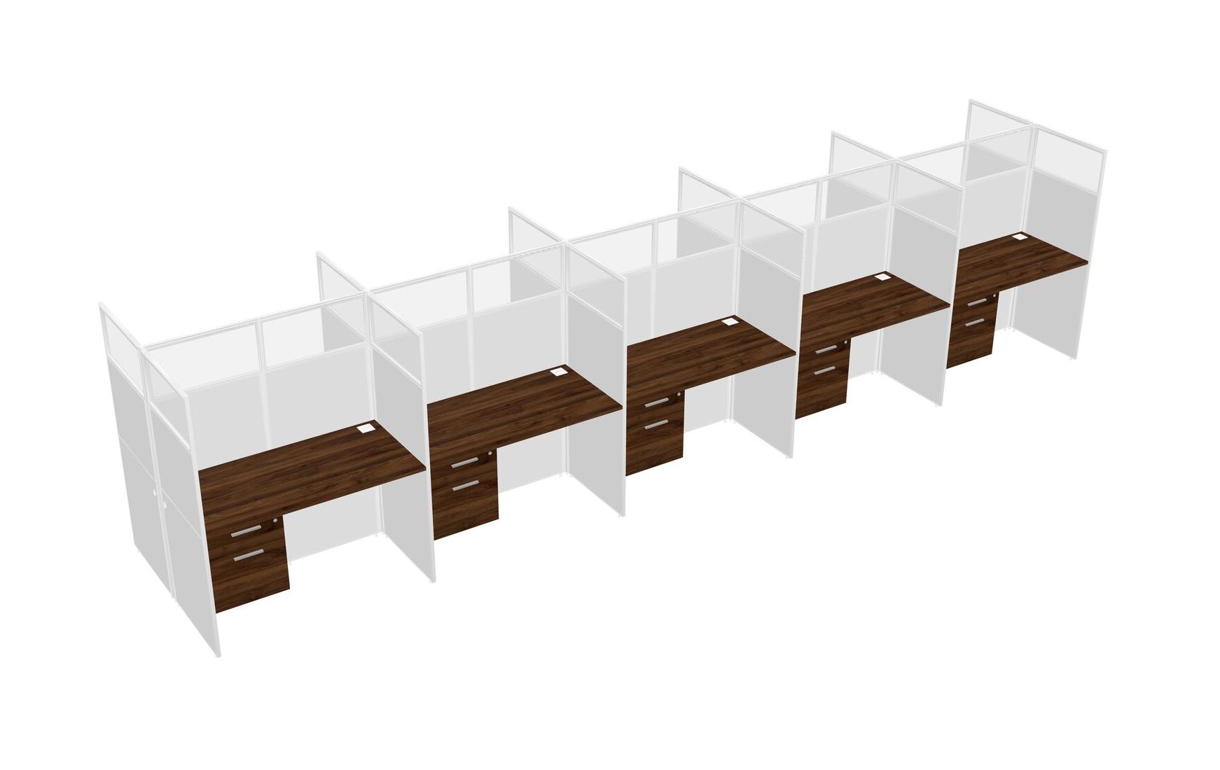 Columbia Walnut Shared Rectangular Office Cubicle Panel System With Hanging Drawers For 10 Persons