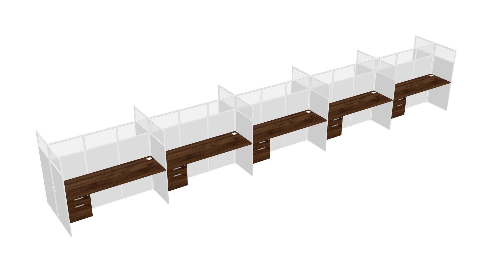 Columbia Walnut Shared Rectangular Office Cubicle Panel System With Hanging Drawers For 10 Persons