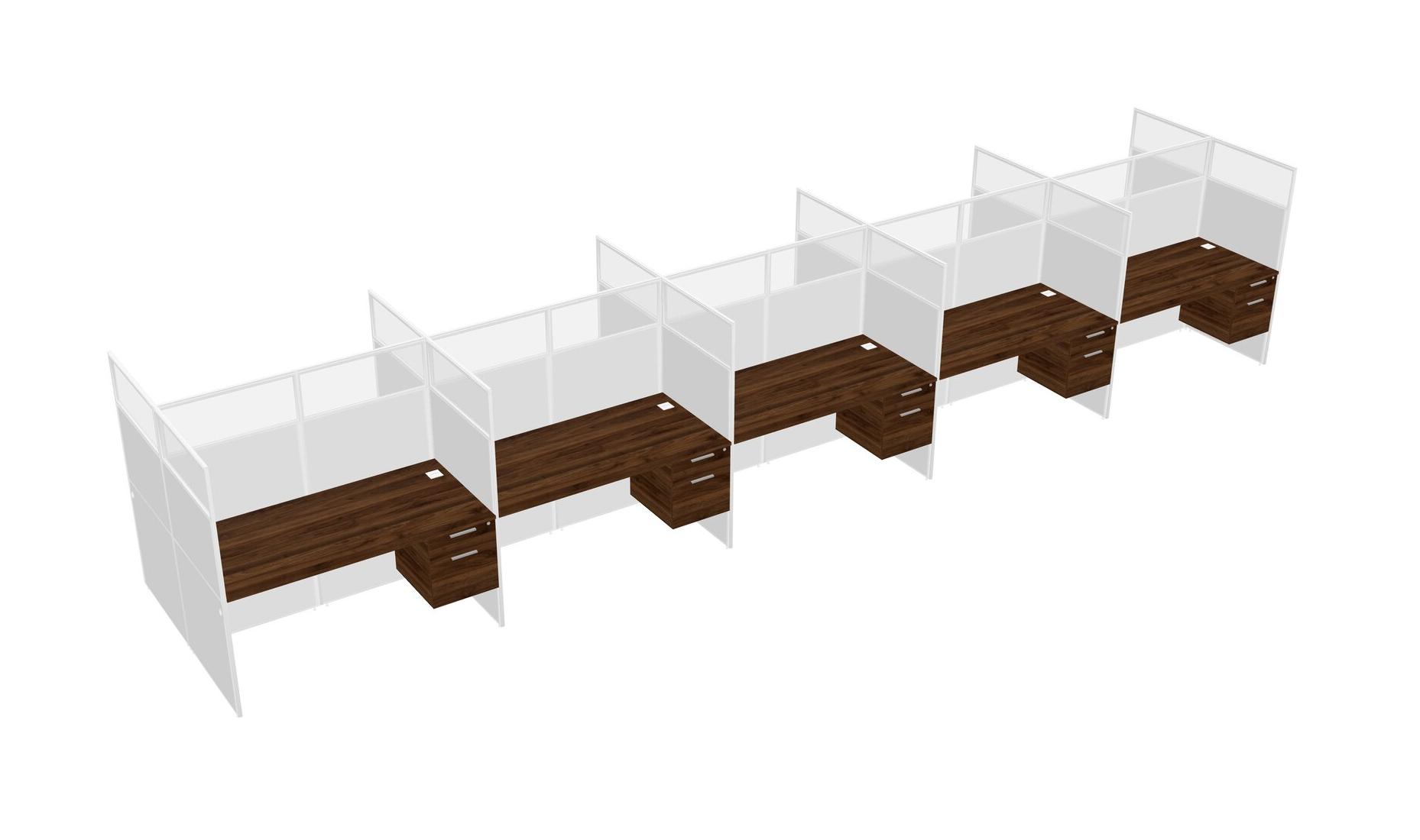 Columbia Walnut Shared Rectangular Office Cubicle Panel System With Hanging Drawers For 10 Persons