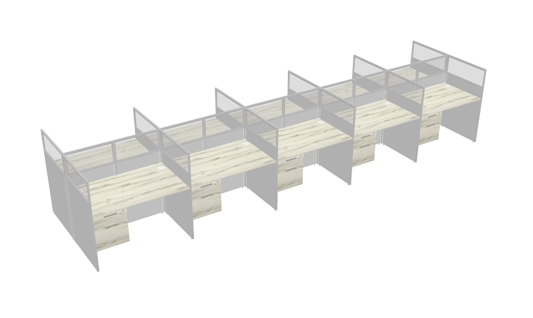 Heinne Holz Shared Rectangular Office Cubicle Panel System With Hanging Drawers For 10 Persons