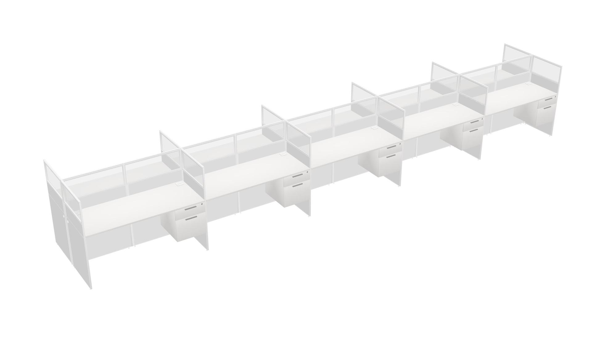 White Shared Rectangular Office Cubicle Panel System With Hanging Drawers For 10 Persons