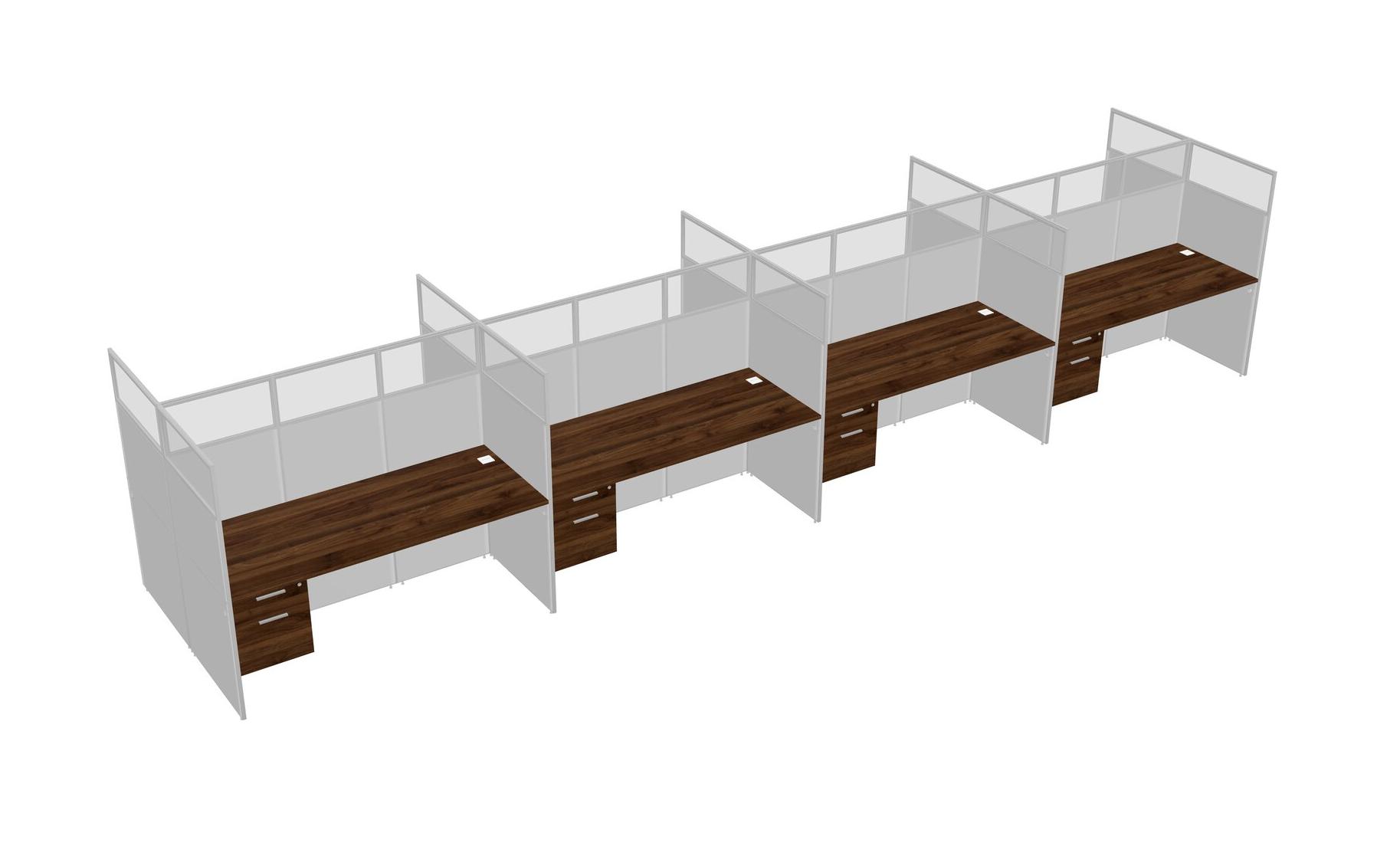 Columbia Walnut Shared Rectangular Office Cubicle Panel System With Hanging Drawers For 8 Persons