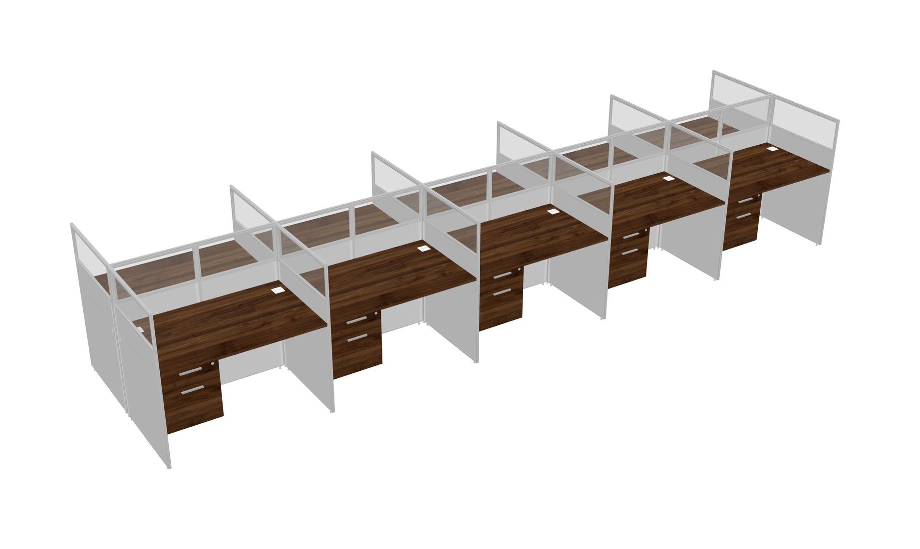 Columbia Walnut Shared Rectangular Office Cubicle Panel System With Hanging Drawers For 10 Persons
