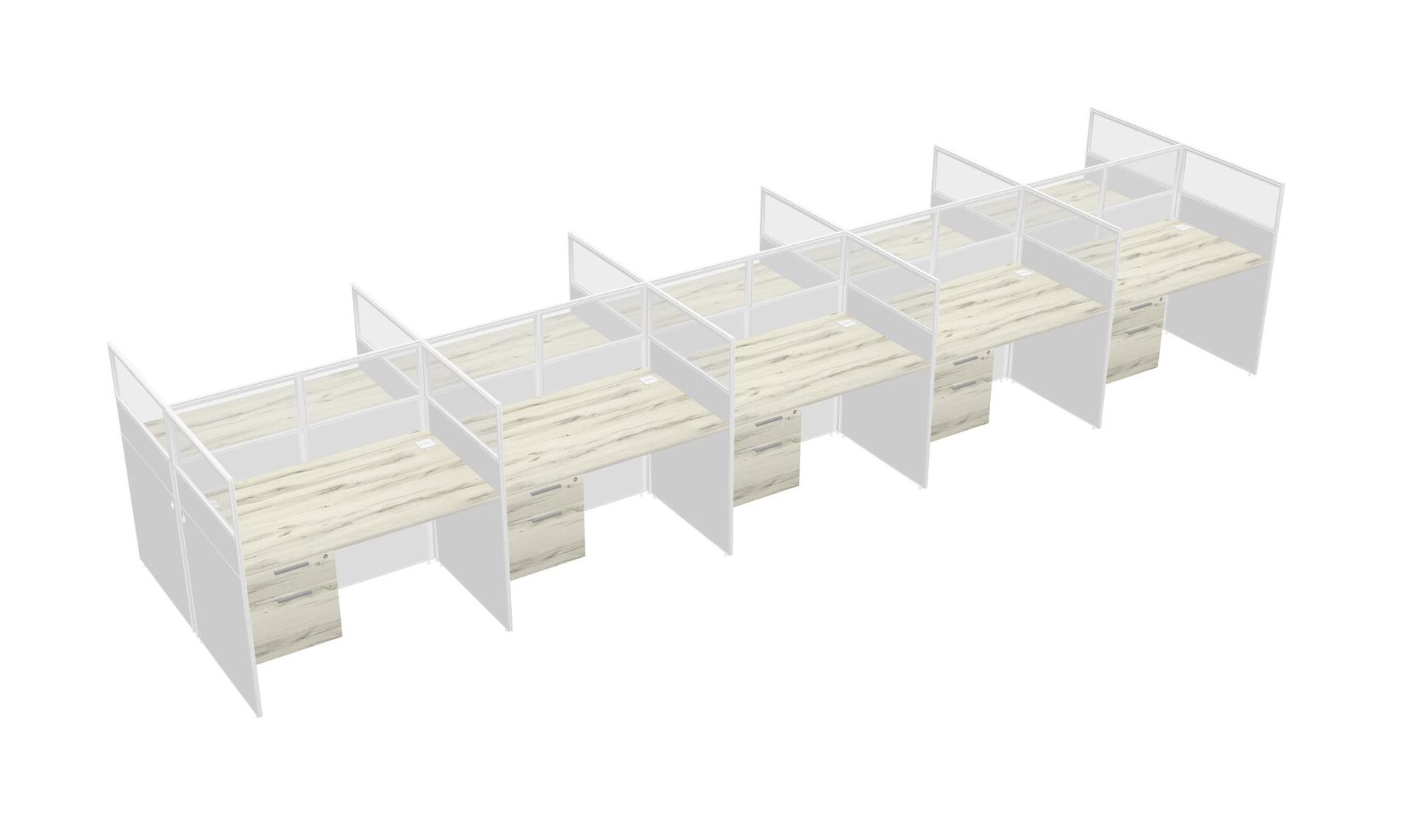 Heinne Holz Shared Rectangular Office Cubicle Panel System With Hanging Drawers For 10 Persons