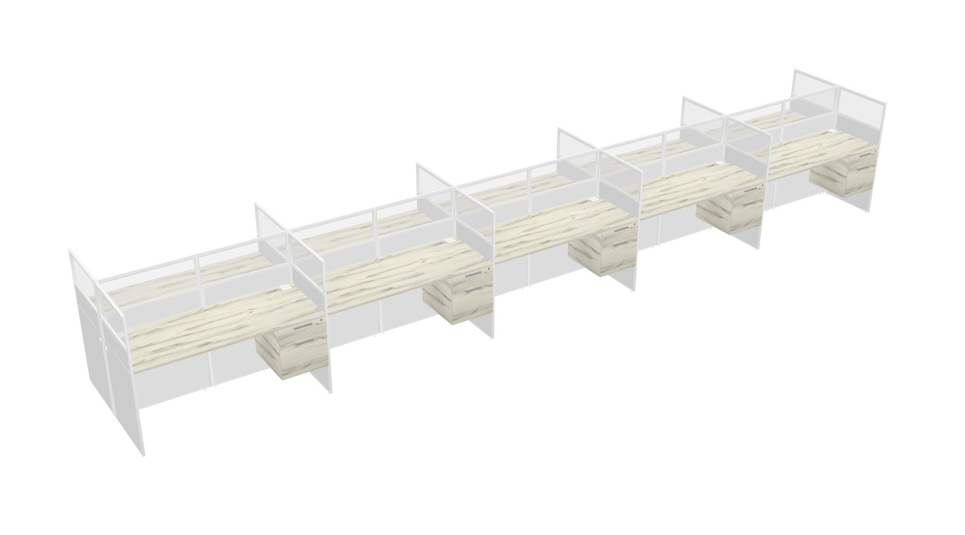 Heinne Holz Shared Rectangular Office Cubicle Panel System With Hanging Drawers For 10 Persons