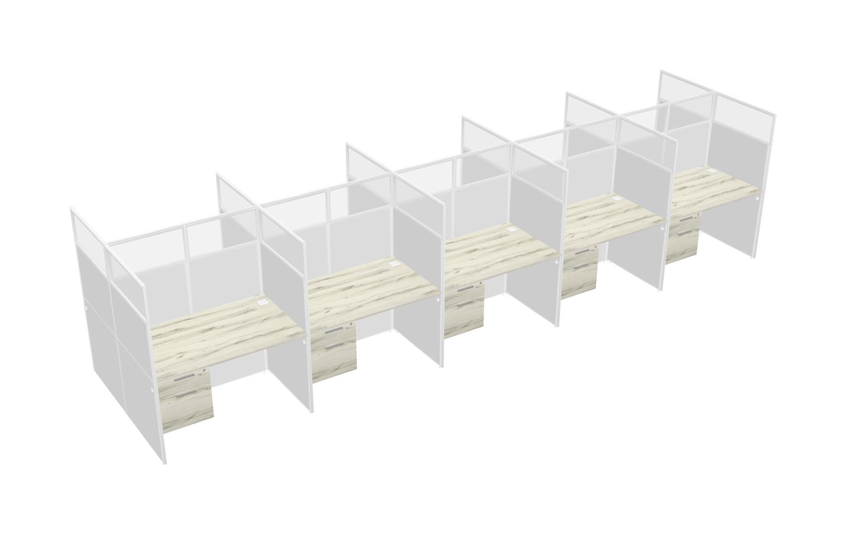 Heinne Holz Shared Rectangular Office Cubicle Panel System With Hanging Drawers For 10 Persons