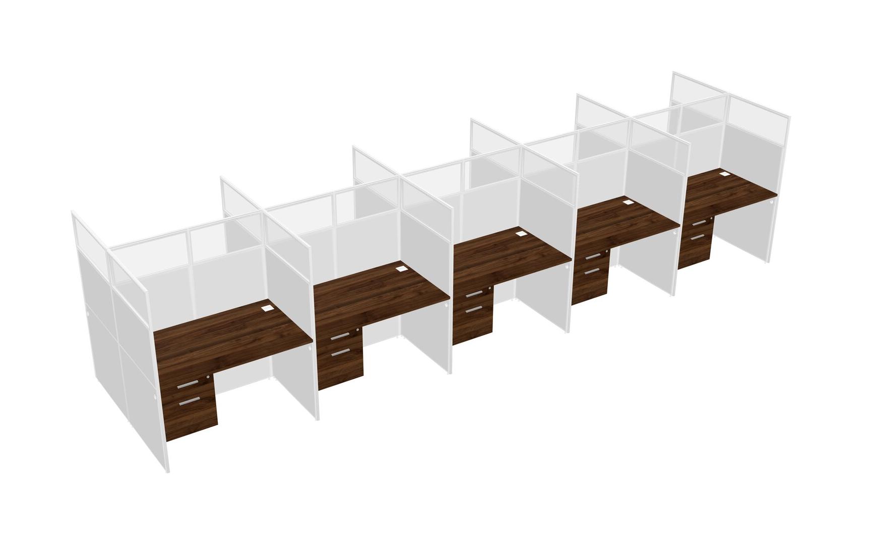 Columbia Walnut Shared Rectangular Office Cubicle Panel System With Hanging Drawers For 10 Persons