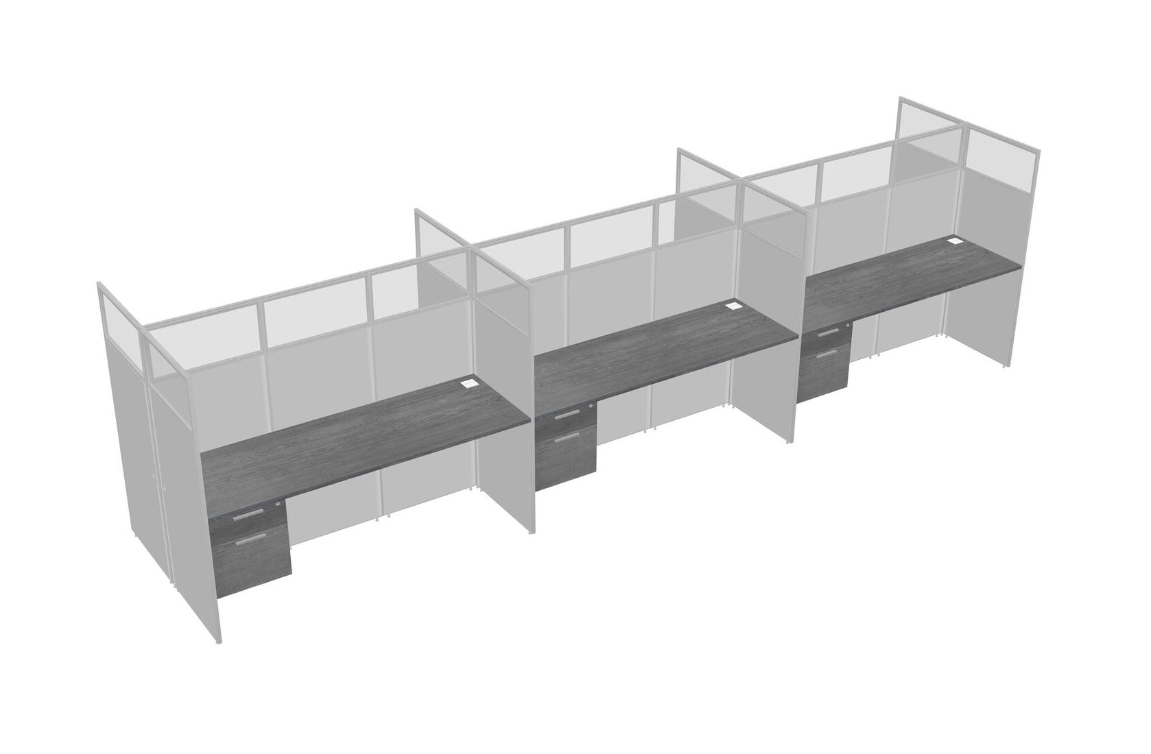Grey Shared Rectangular Office Cubicle Panel System With Hanging Drawers For 6 Persons