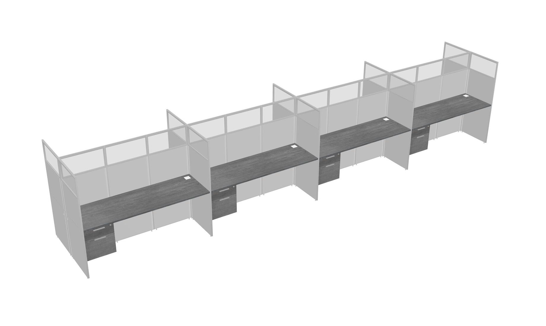 Grey Shared Rectangular Office Cubicle Panel System With Hanging Drawers For 8 Persons
