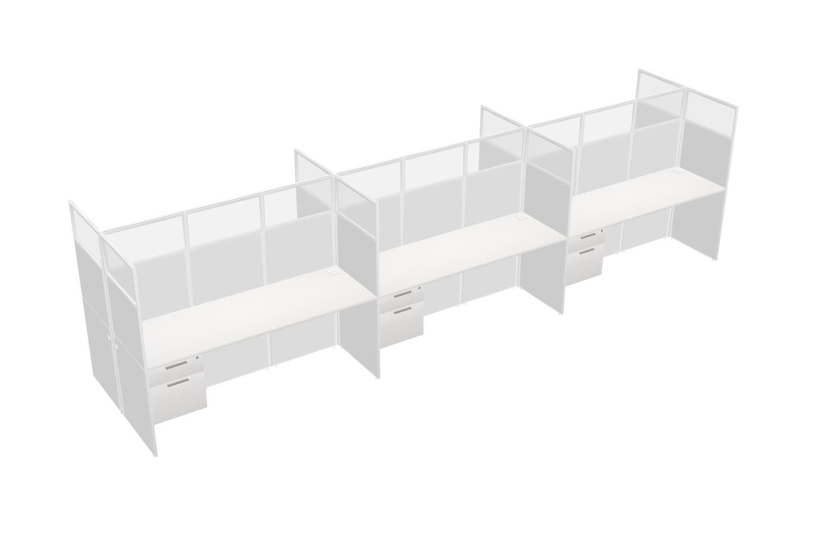 White Shared Rectangular Office Cubicle Panel System With Hanging Drawers For 6 Persons