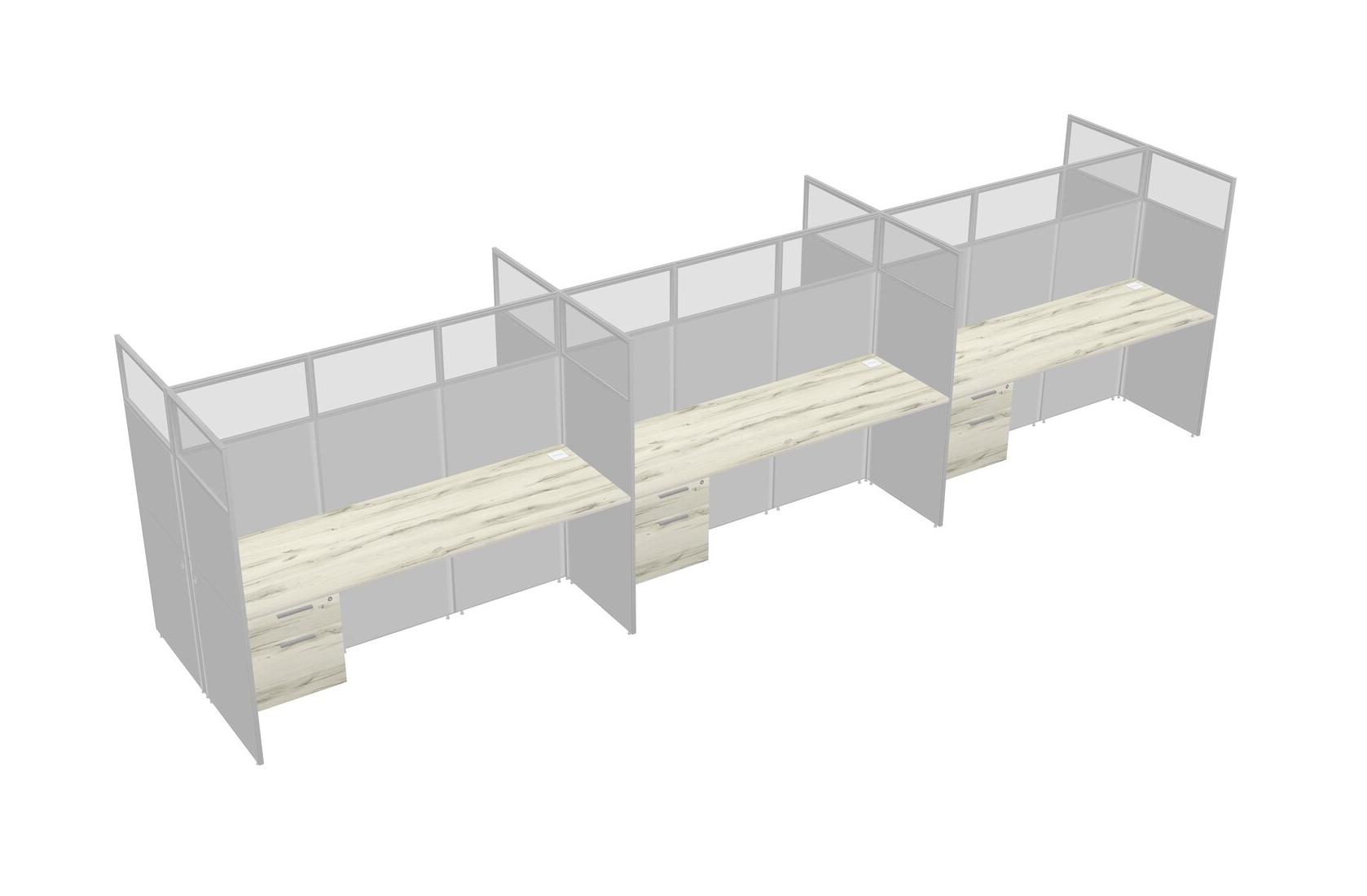 Heinne Holz Shared Rectangular Office Cubicle Panel System With Hanging Drawers For 6 Persons