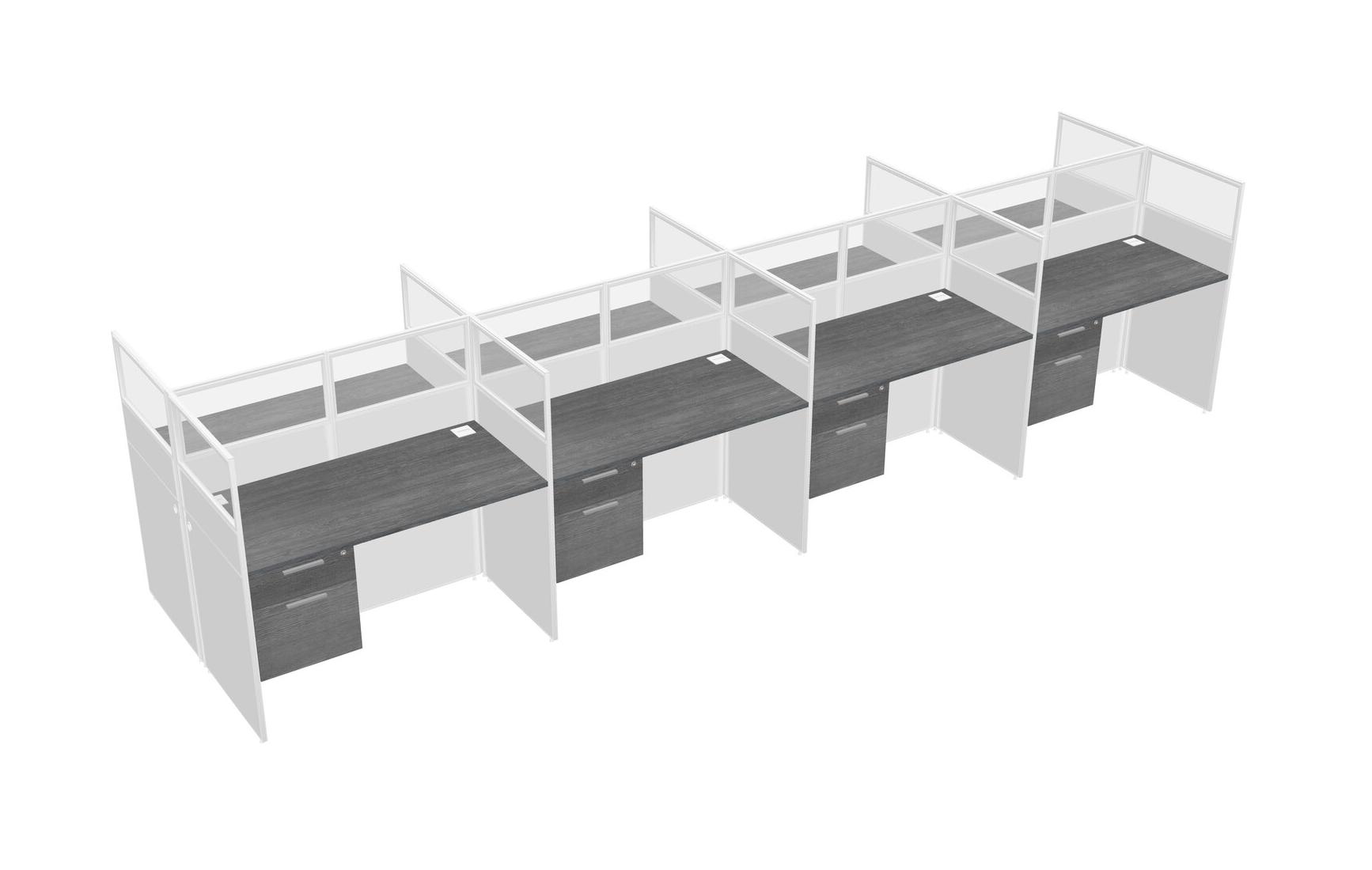 Grey Shared Rectangular Office Cubicle Panel System With Hanging Drawers For 8 Persons