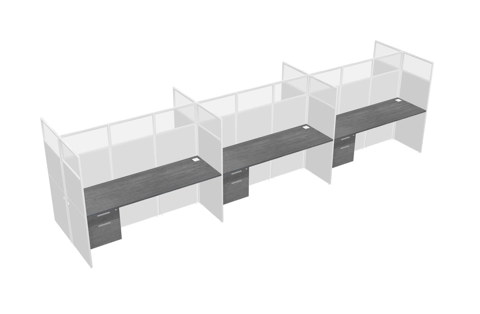 Grey Shared Rectangular Office Cubicle Panel System With Hanging Drawers For 6 Persons