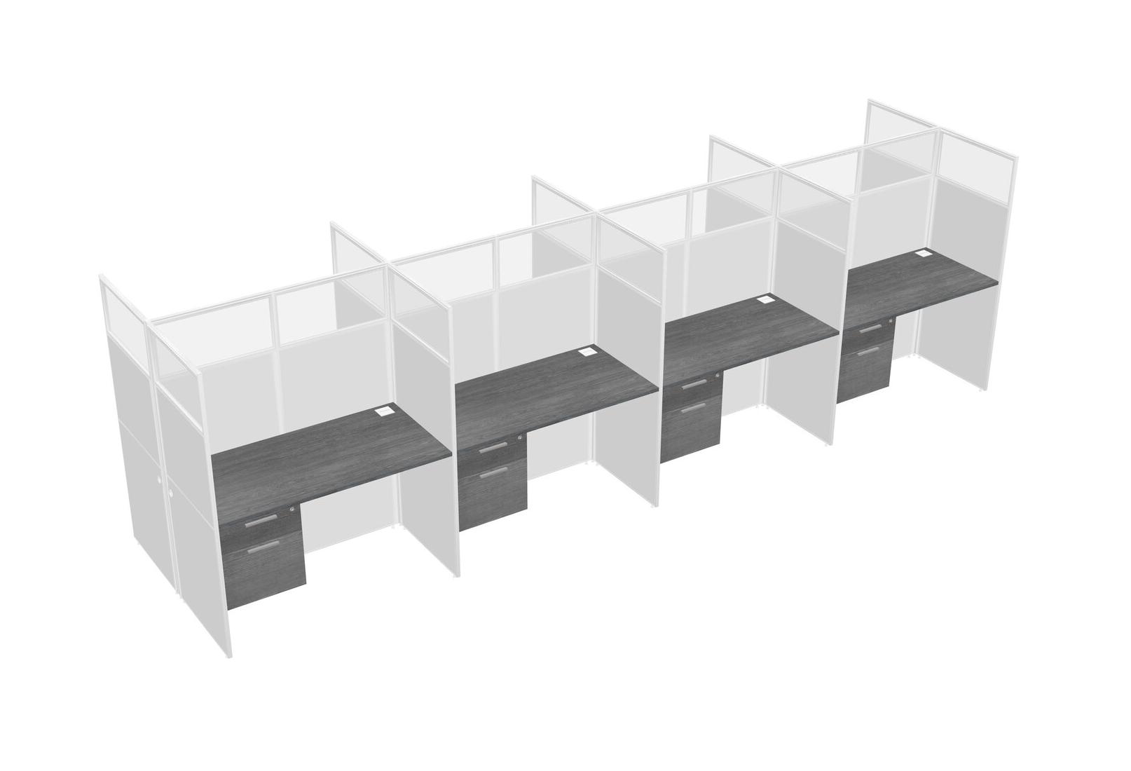 Grey Shared Rectangular Office Cubicle Panel System With Hanging Drawers For 8 Persons