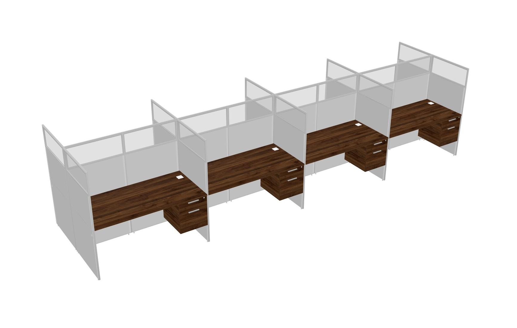 Columbia Walnut Shared Rectangular Office Cubicle Panel System With Hanging Drawers For 8 Persons