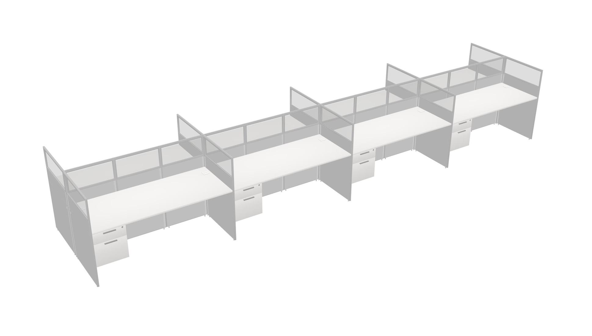 White Shared Rectangular Office Cubicle Panel System With Hanging Drawers For 8 Persons