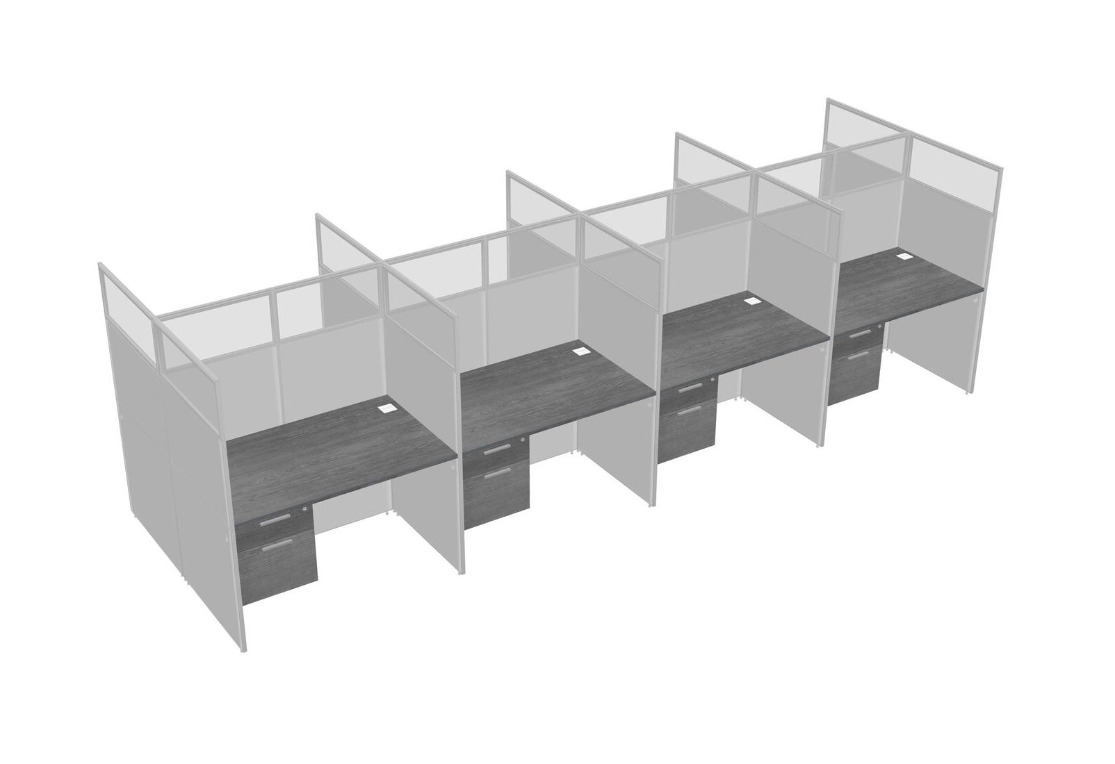 Grey Shared Rectangular Office Cubicle Panel System With Hanging Drawers For 8 Persons
