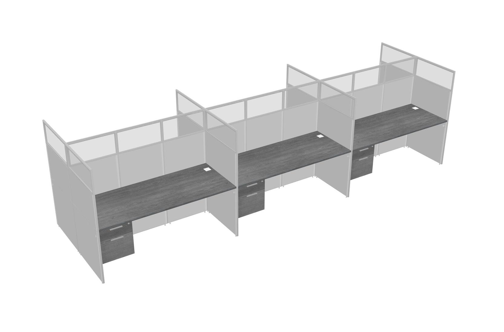 Grey Shared Rectangular Office Cubicle Panel System With Hanging Drawers For 6 Persons
