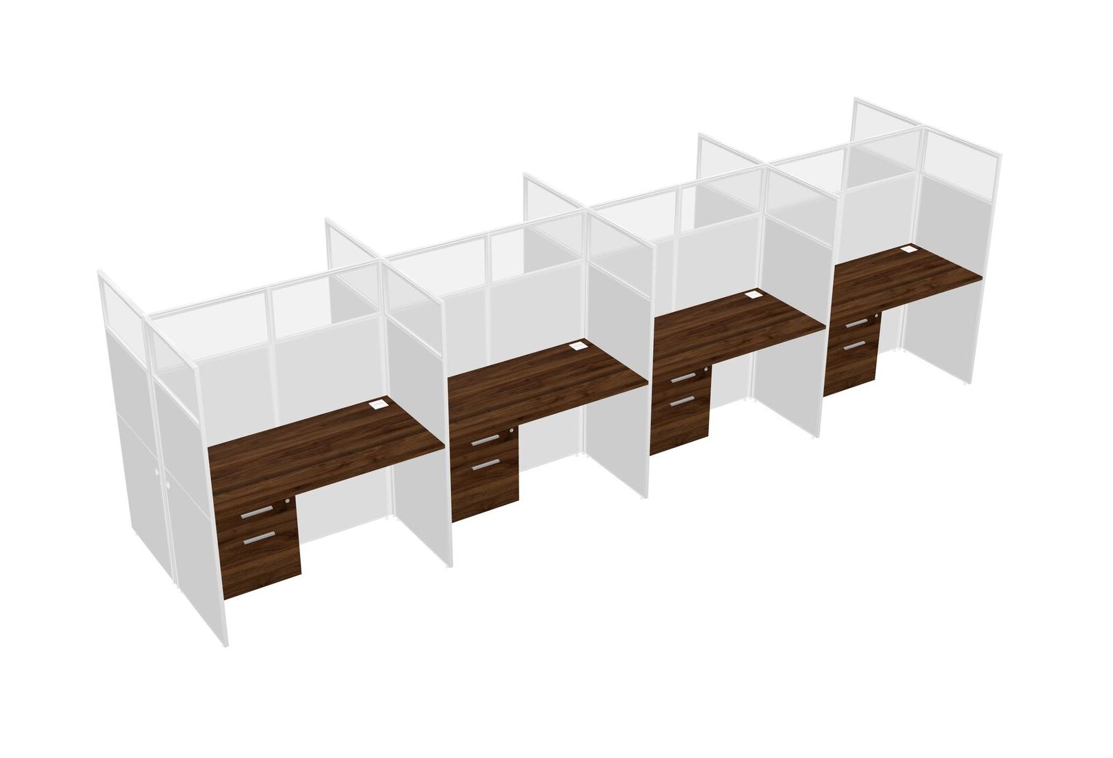 Columbia Walnut Shared Rectangular Office Cubicle Panel System With Hanging Drawers For 8 Persons