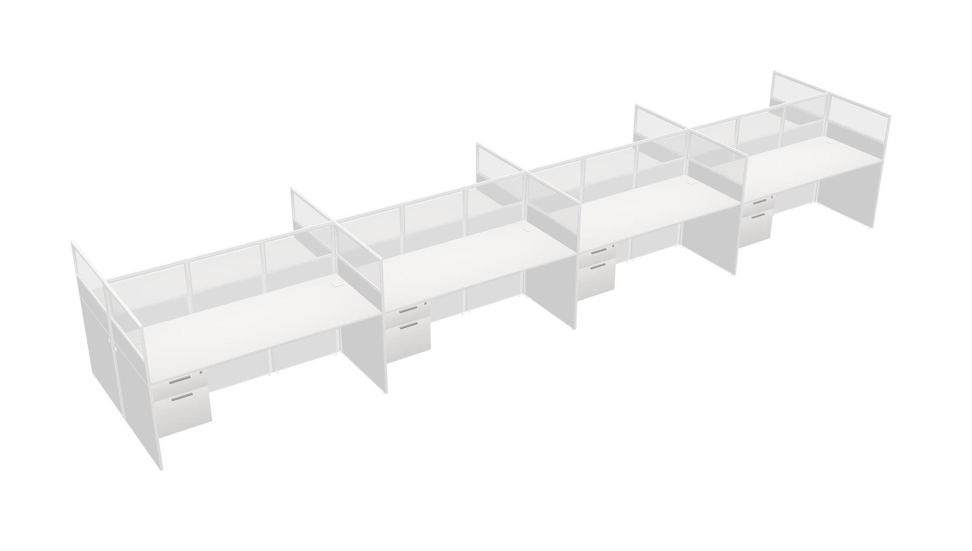 White Shared Rectangular Office Cubicle Panel System With Hanging Drawers For 8 Persons
