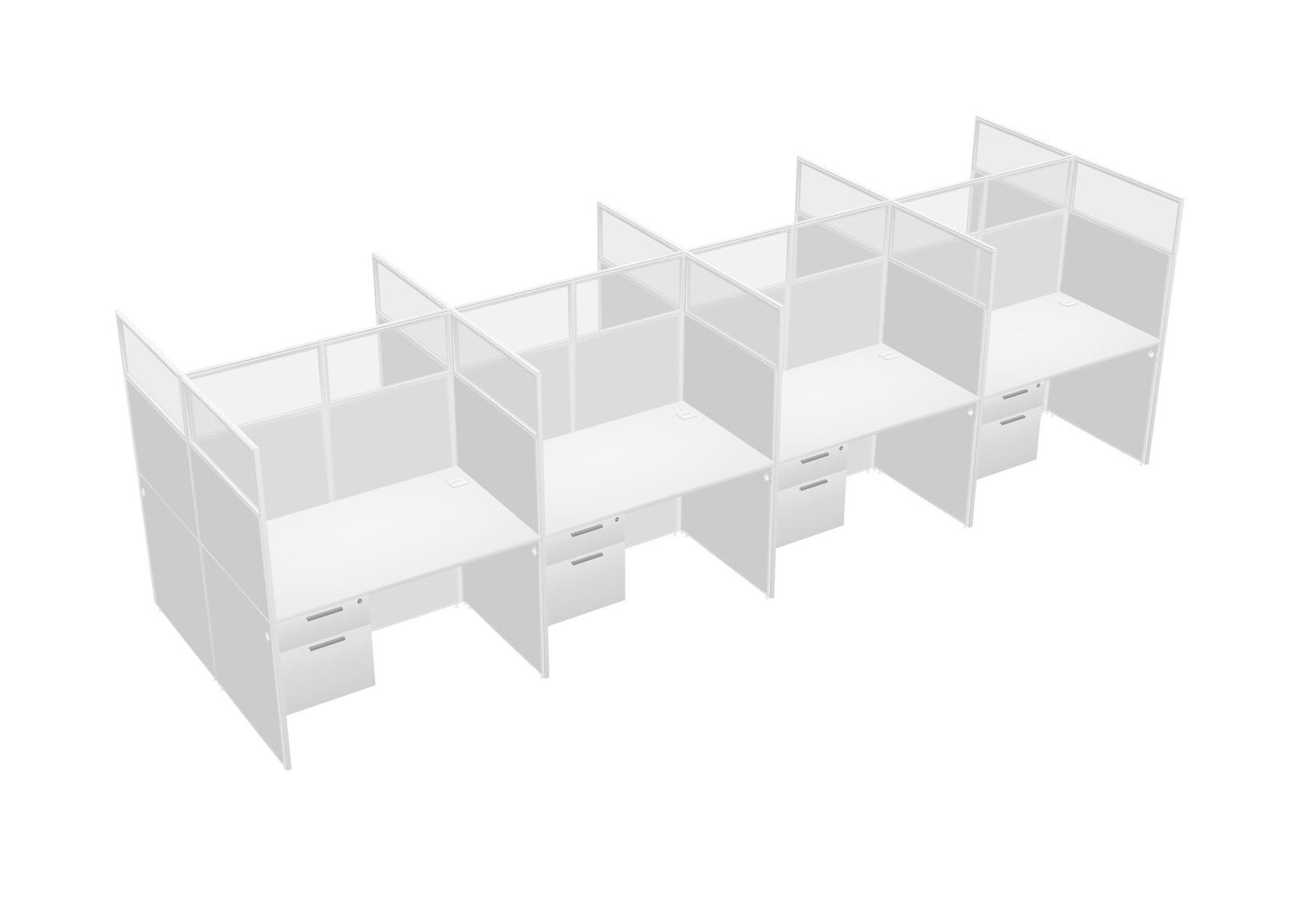 White Shared Rectangular Office Cubicle Panel System With Hanging Drawers For 8 Persons