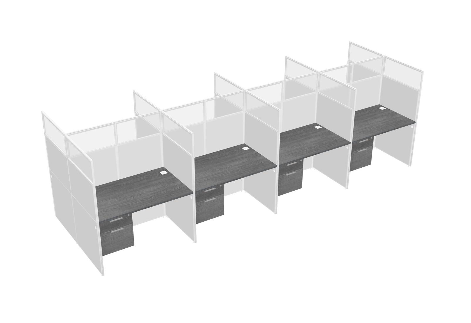 Grey Shared Rectangular Office Cubicle Panel System With Hanging Drawers For 8 Persons
