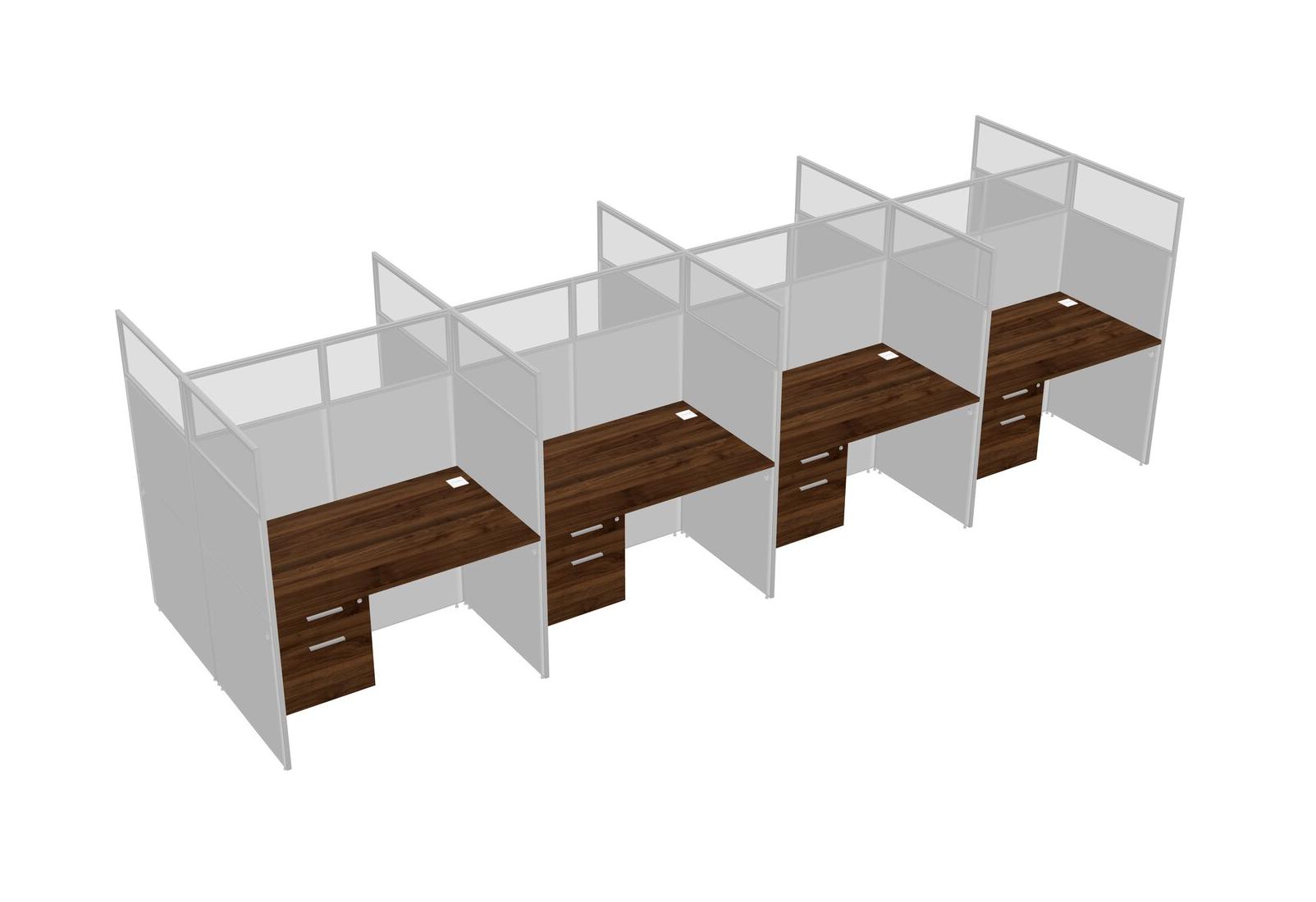 Columbia Walnut Shared Rectangular Office Cubicle Panel System With Hanging Drawers For 8 Persons
