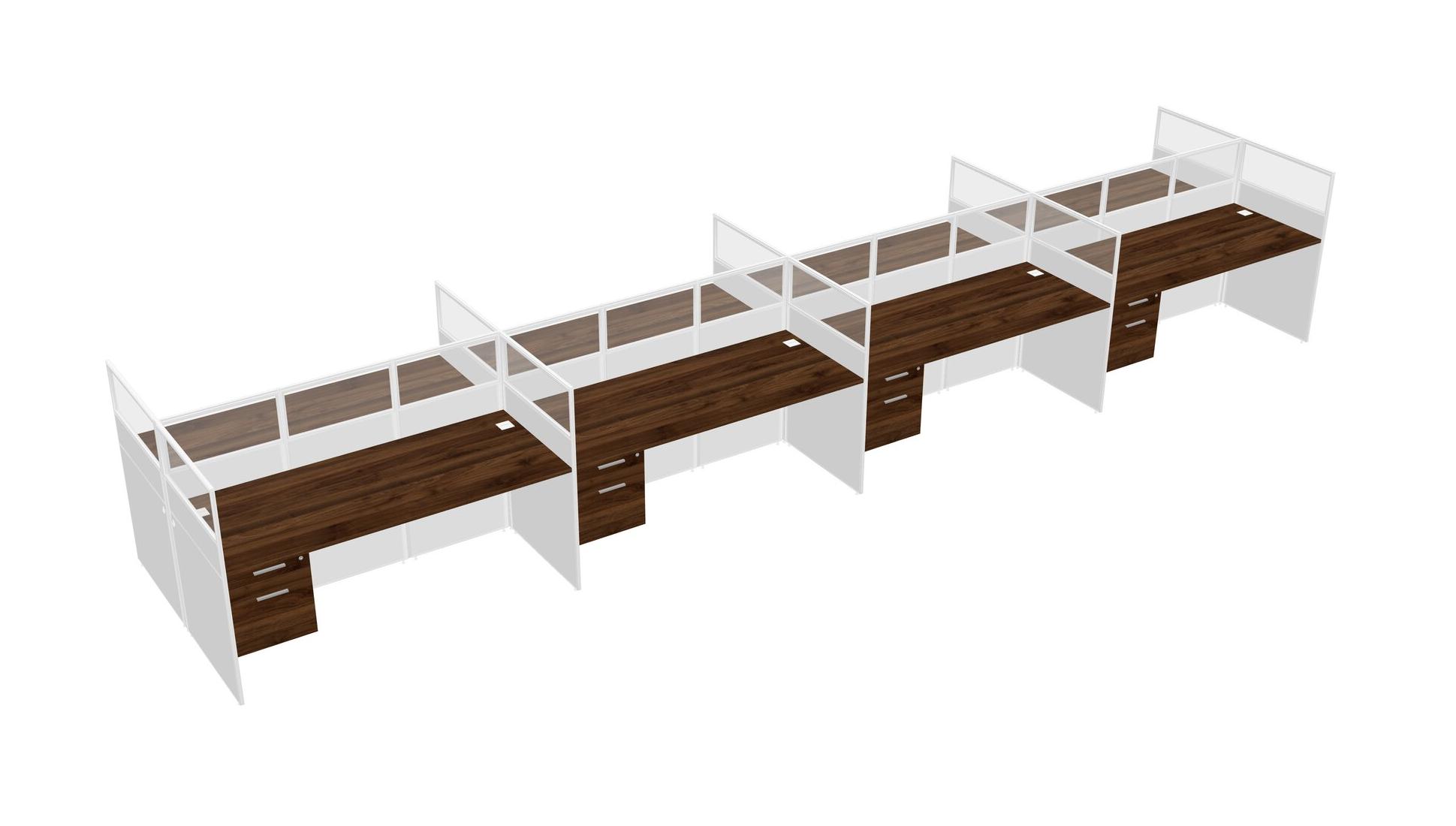 Columbia Walnut Shared Rectangular Office Cubicle Panel System With Hanging Drawers For 8 Persons