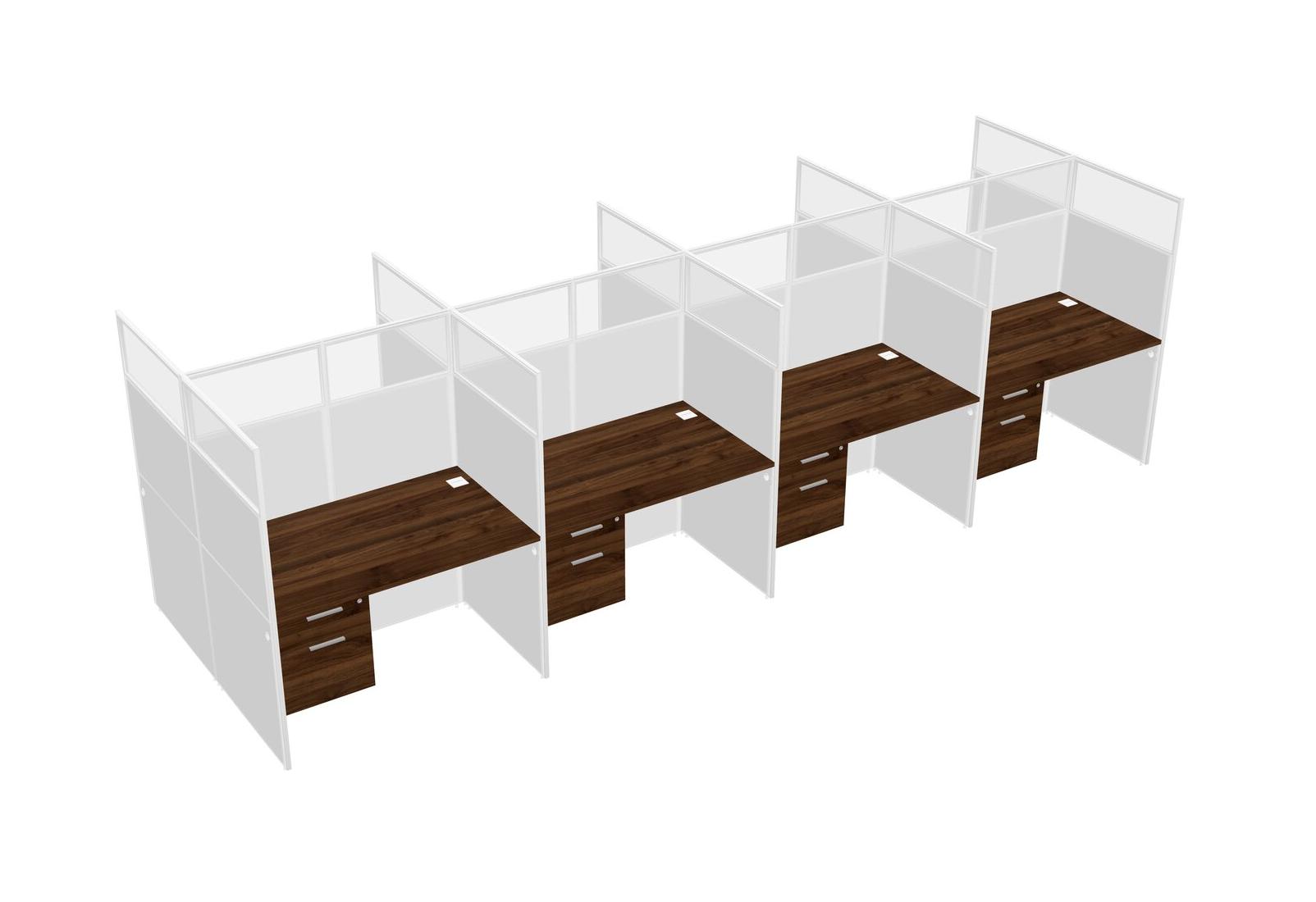 Columbia Walnut Shared Rectangular Office Cubicle Panel System With Hanging Drawers For 8 Persons