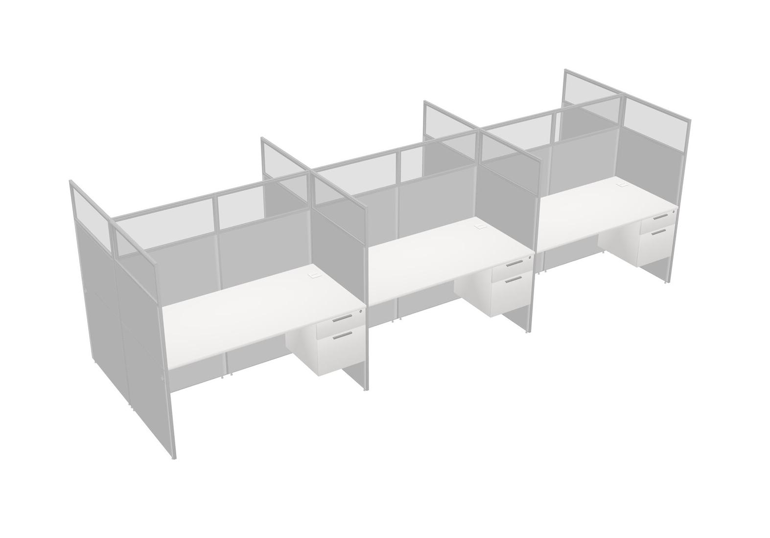 White Shared Rectangular Office Cubicle Panel System With Hanging Drawers For 6 Persons